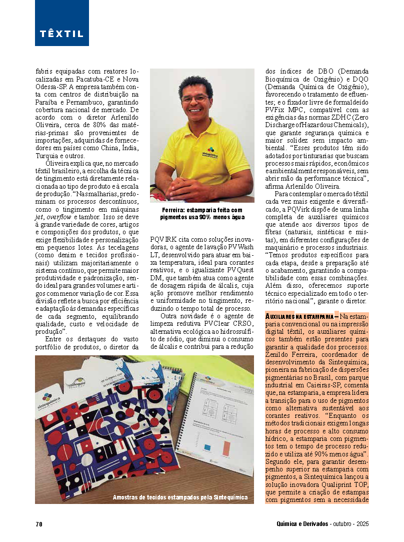 Zenildo Ferreira, estamparia digital dispensa os corantes reativos – Revista Química e Derivados n° 666