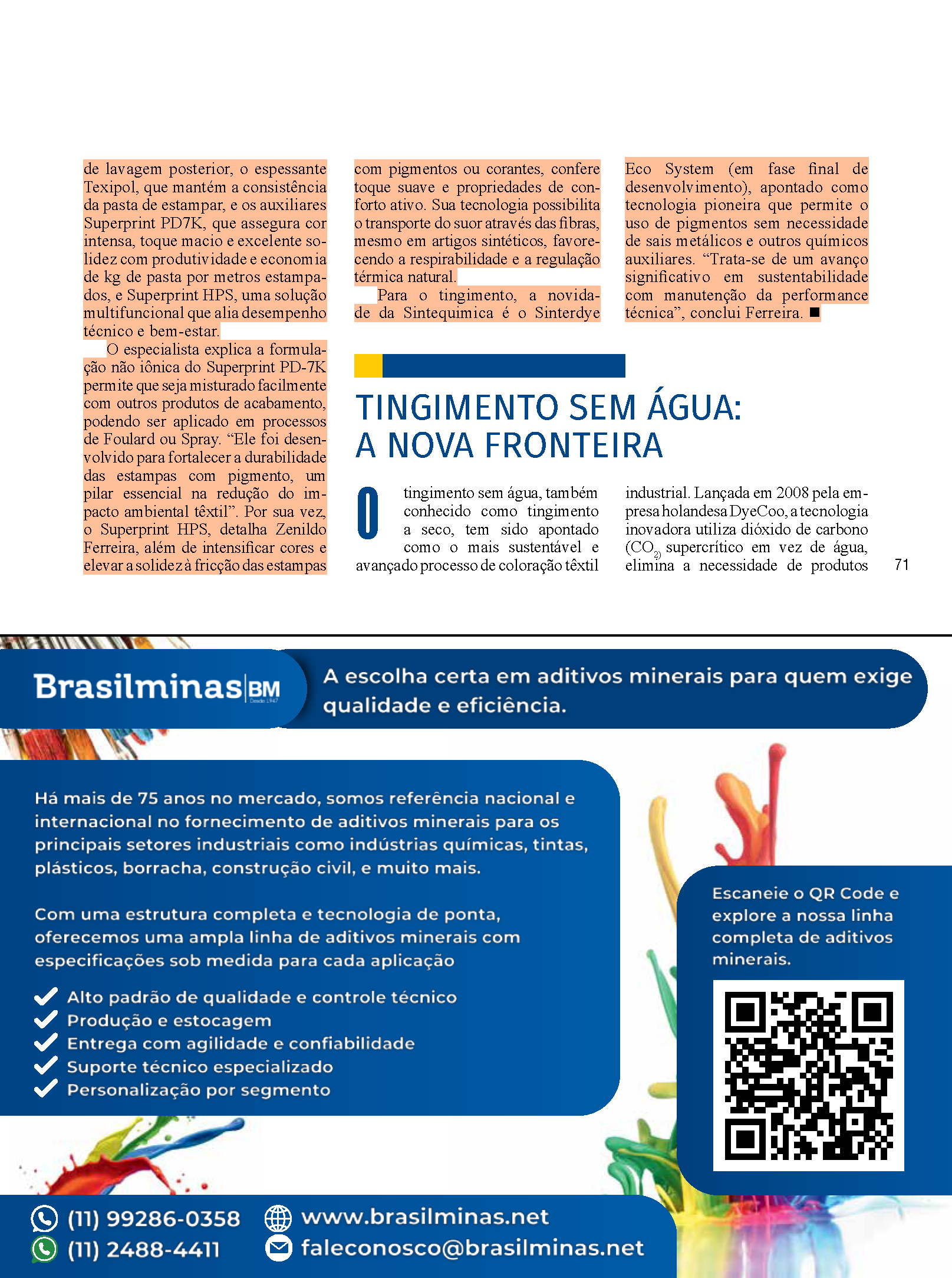 Auxiliares na estamparia – Zenildo Ferreira – Revista Química e Derivados Edição 672