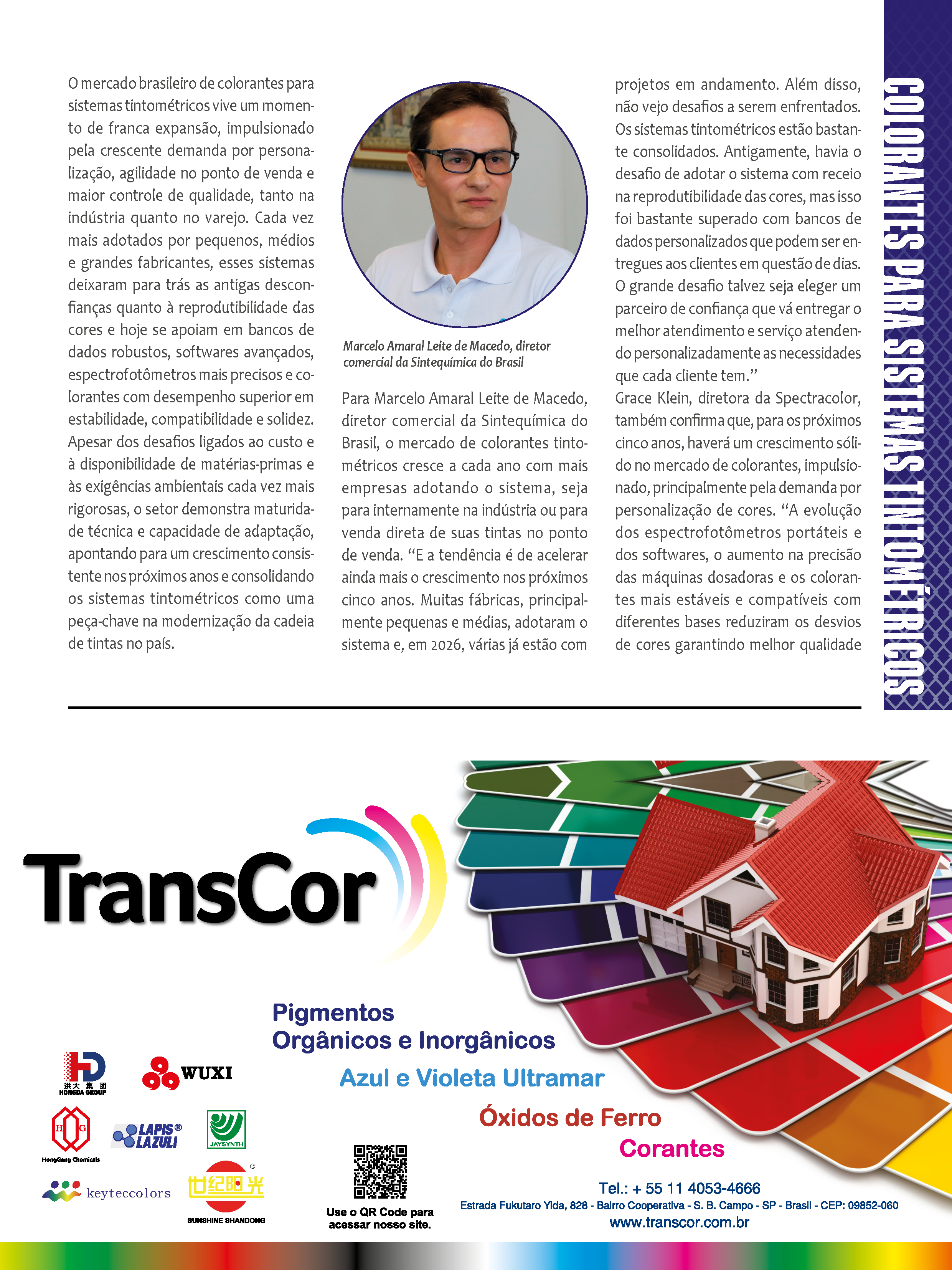 Corantes para sistemas tintométricos – Marcelo Amaral Leite de Macedo – Revista Paint & Pintura Jan/Fev 2025